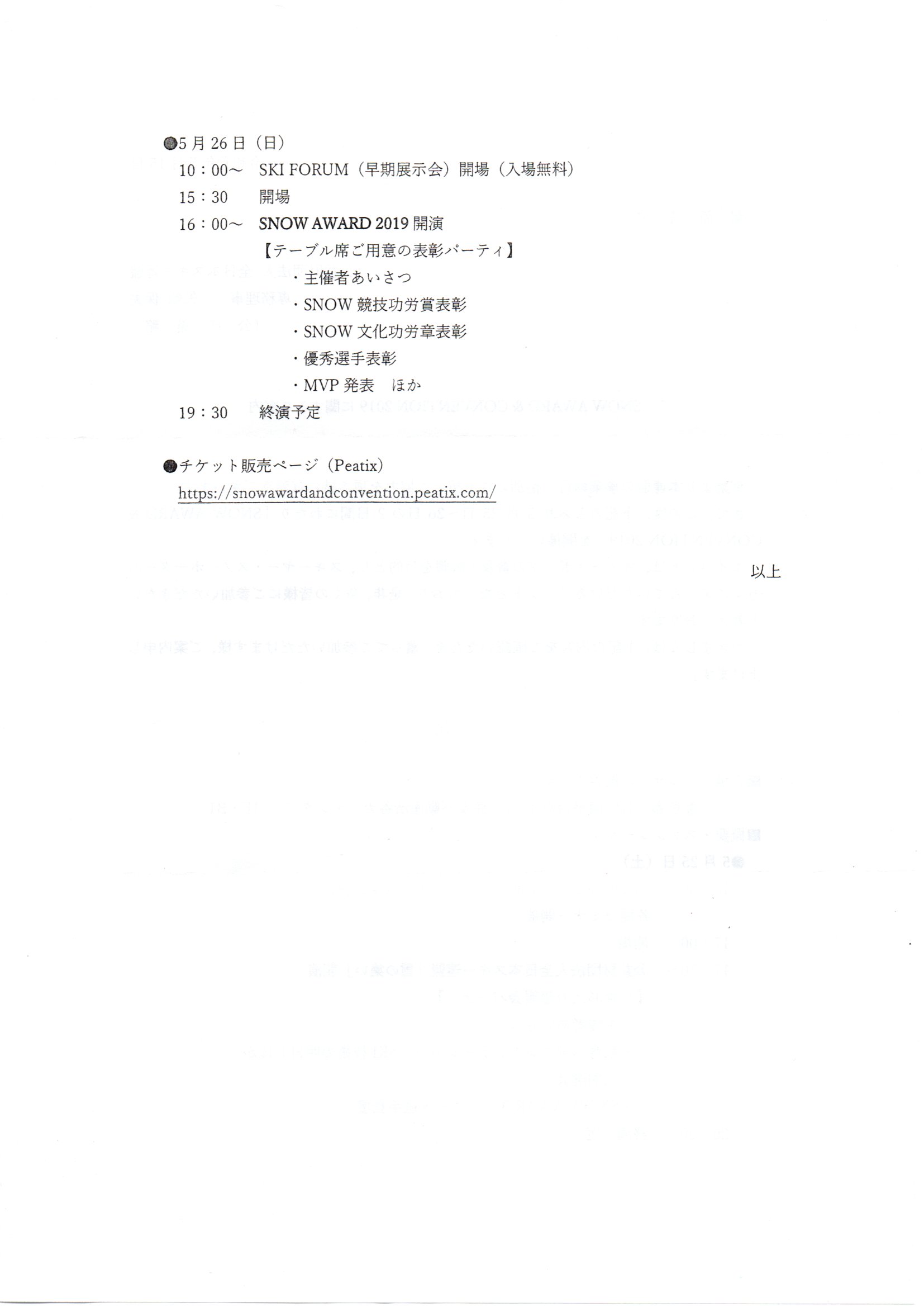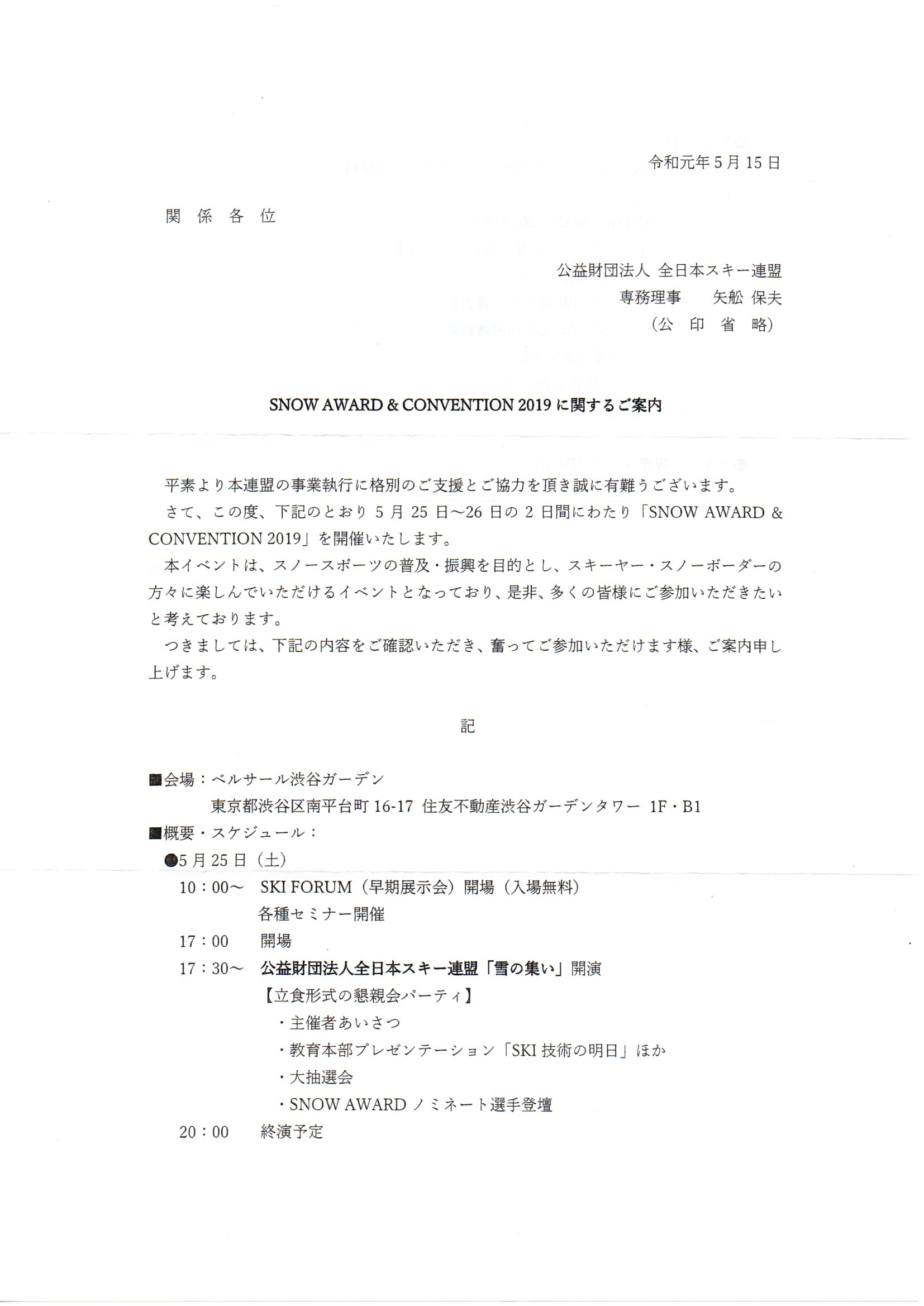 ●SNOW AWARD&CONVENTION 2019 に関するご案内